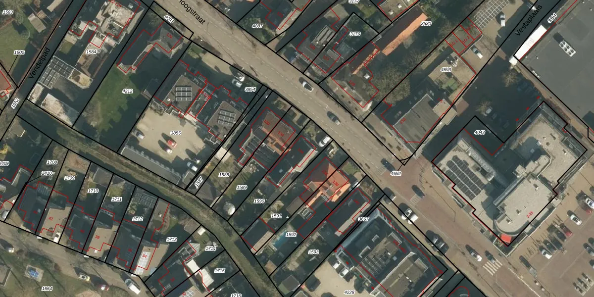 Het perceel waarop Hoogstraat 134 staat heeft een oppervlakte van 385 m². Dit is een groot perceel. De perceeloppervlakte wordt geregistreerd door het Kadaster. Gedetailleerde informatie over de maten van dit perceel kunt u vinden in het rapport Kadastrale kaart met maatvoering van Hoogstraat 134.