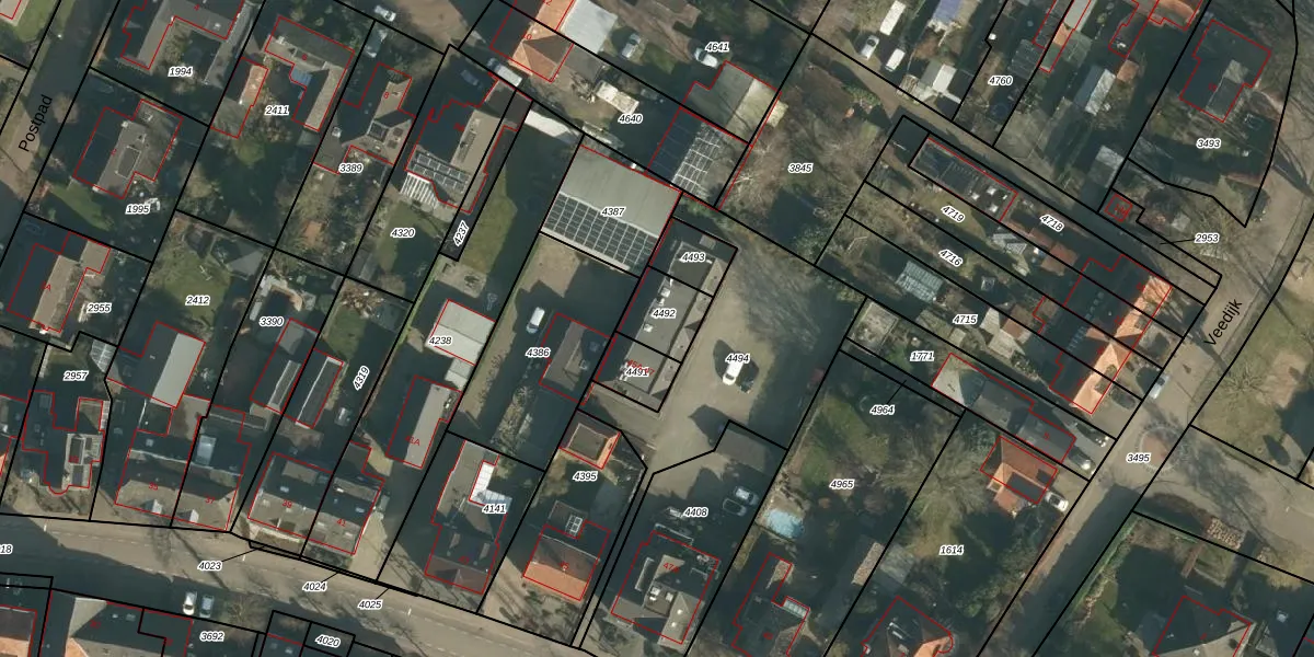 Gebruik de zoekbalk of klik op een perceel voor informatie over de adressen binnen dit perceel.