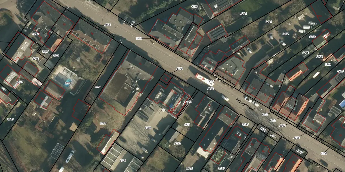 Het perceel waarop Hoogstraat 72-A staat heeft een oppervlakte van 1065 m². Dit is een zeer groot perceel. De perceeloppervlakte wordt geregistreerd door het Kadaster. Gedetailleerde informatie over de maten van dit perceel kunt u vinden in het rapport Kadastrale kaart met maatvoering van Hoogstraat 72-A.