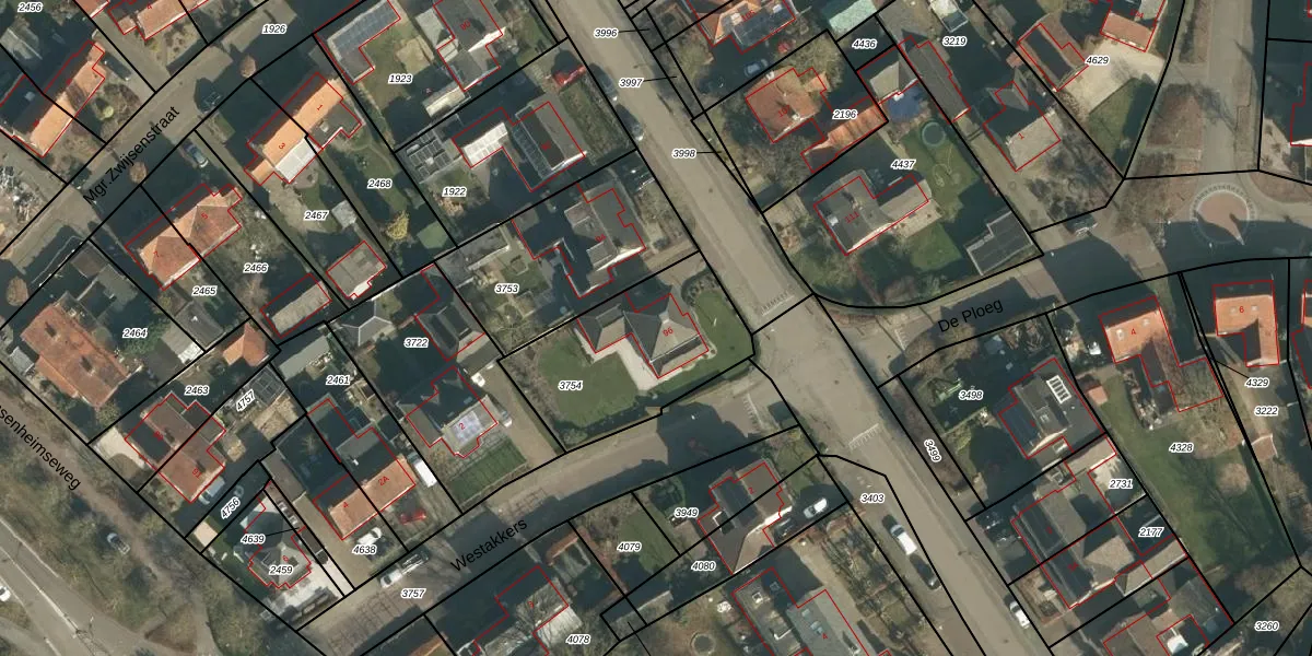 Gebruik de zoekbalk of klik op een perceel voor informatie over de adressen binnen dit perceel.