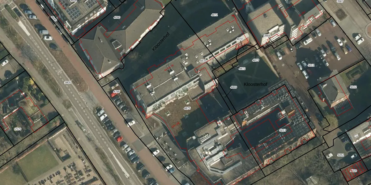 Het perceel waarop Kloosterhof 5-A staat heeft een oppervlakte van 4212 m². Dit is een zeer groot perceel. De perceeloppervlakte wordt geregistreerd door het Kadaster. Gedetailleerde informatie over de maten van dit perceel kunt u vinden in het rapport Kadastrale kaart met maatvoering van Kloosterhof 5-A.