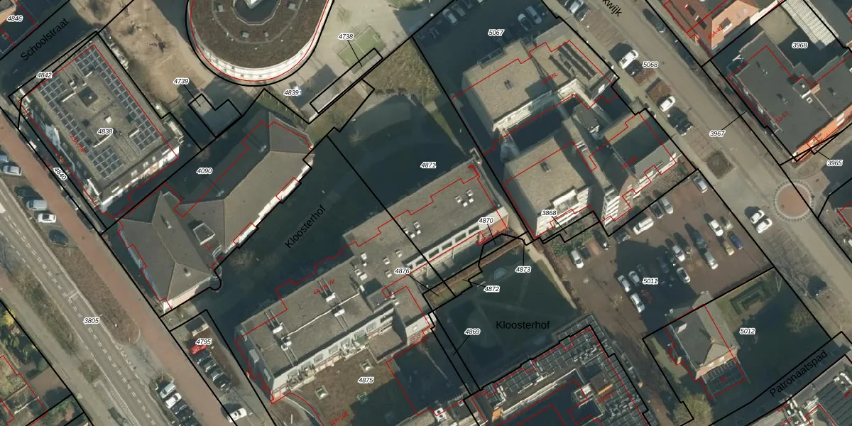 Het perceel waarop Kloosterhof 7-M staat heeft een oppervlakte van 1257 m². Dit is een zeer groot perceel. De perceeloppervlakte wordt geregistreerd door het Kadaster. Gedetailleerde informatie over de maten van dit perceel kunt u vinden in het rapport Kadastrale kaart met maatvoering van Kloosterhof 7-M.