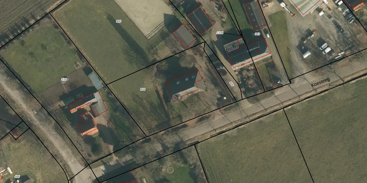 Koesteeg 5 is gelegen op kadastraal perceel BLC00M804. Deze kadastrale aanduiding is uniek en wordt gebruikt door het Kadaster om eigendomsrechten en andere zakelijke rechten vast te leggen. Het perceel maakt onderdeel uit van de kadastrale gemeente Berlicum.