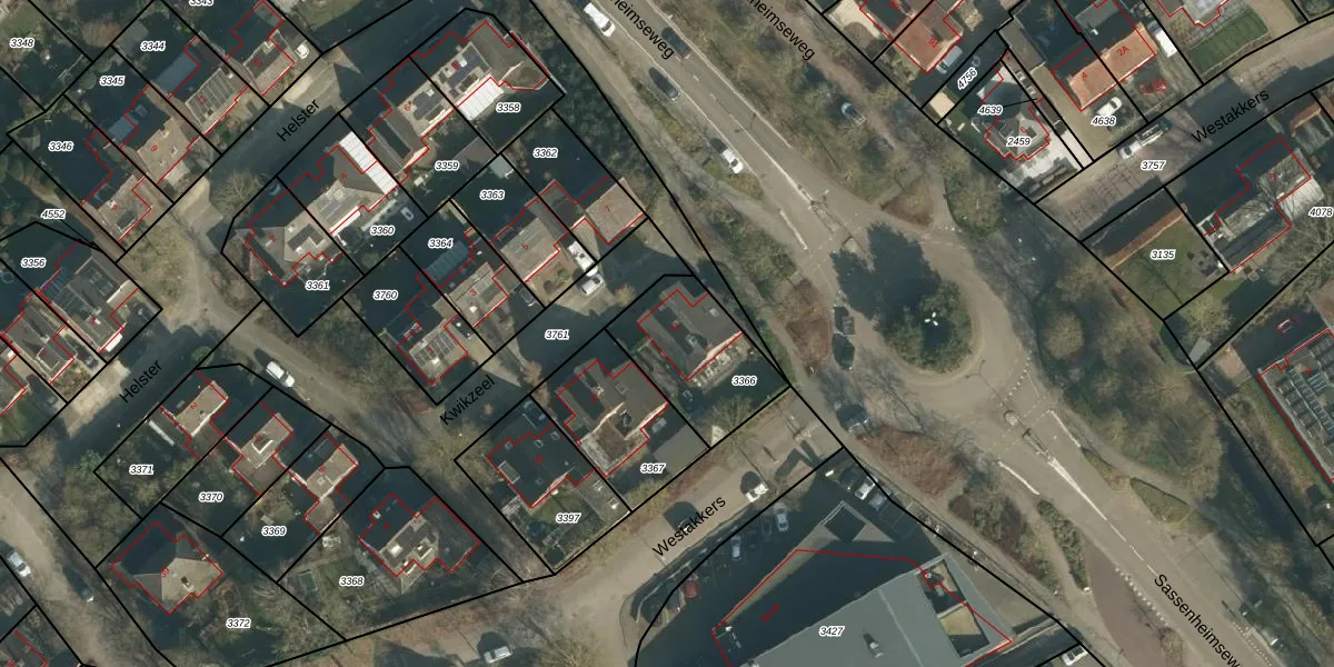 Gebruik de zoekbalk of klik op een perceel voor informatie over de adressen binnen dit perceel.