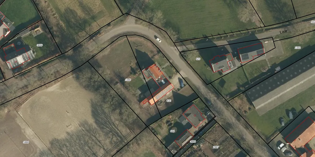 Het perceel waarop Laar 10 staat heeft een oppervlakte van 1040 m². Dit is een zeer groot perceel. De perceeloppervlakte wordt geregistreerd door het Kadaster. Gedetailleerde informatie over de maten van dit perceel kunt u vinden in het rapport Kadastrale kaart met maatvoering van Laar 10.