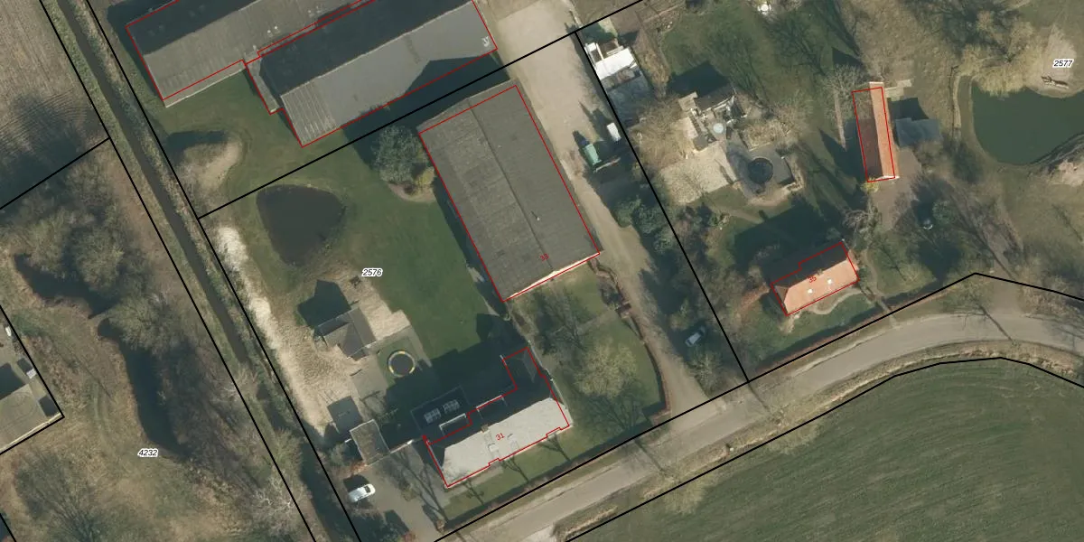 Het perceel waarop Laar 33 staat heeft een oppervlakte van 5600 m². Dit is een zeer groot perceel. De perceeloppervlakte wordt geregistreerd door het Kadaster. Gedetailleerde informatie over de maten van dit perceel kunt u vinden in het rapport Kadastrale kaart met maatvoering van Laar 33.
