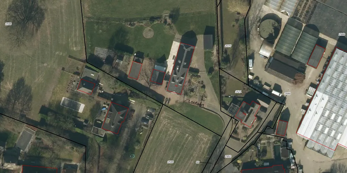 Het perceel waarop Loofaert 59 staat heeft een oppervlakte van 1,3 ha. Dit is een zeer groot perceel. De perceeloppervlakte wordt geregistreerd door het Kadaster. Gedetailleerde informatie over de maten van dit perceel kunt u vinden in het rapport Kadastrale kaart met maatvoering van Loofaert 59.