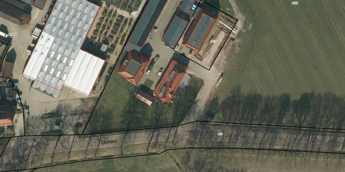 Het perceel waarop Loofaert 63 staat heeft een oppervlakte van 2,3 ha. Dit is een zeer groot perceel. De perceeloppervlakte wordt geregistreerd door het Kadaster. Gedetailleerde informatie over de maten van dit perceel kunt u vinden in het rapport Kadastrale kaart met maatvoering van Loofaert 63.