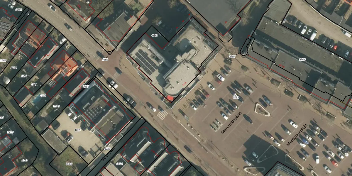 Het perceel waarop Mercuriusplein 5 staat heeft een oppervlakte van 1290 m². Dit is een zeer groot perceel. De perceeloppervlakte wordt geregistreerd door het Kadaster. Gedetailleerde informatie over de maten van dit perceel kunt u vinden in het rapport Kadastrale kaart met maatvoering van Mercuriusplein 5.