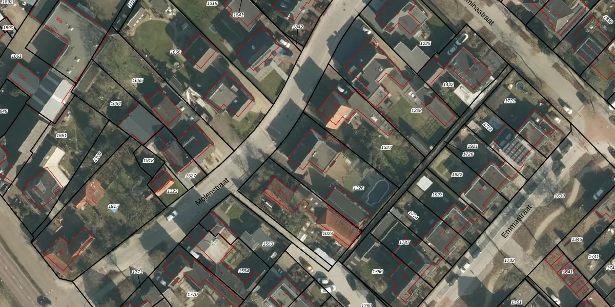 Het perceel waarop Molenstraat 8 staat heeft een oppervlakte van 717 m². Dit is een groot perceel. De perceeloppervlakte wordt geregistreerd door het Kadaster. Gedetailleerde informatie over de maten van dit perceel kunt u vinden in het rapport Kadastrale kaart met maatvoering van Molenstraat 8.