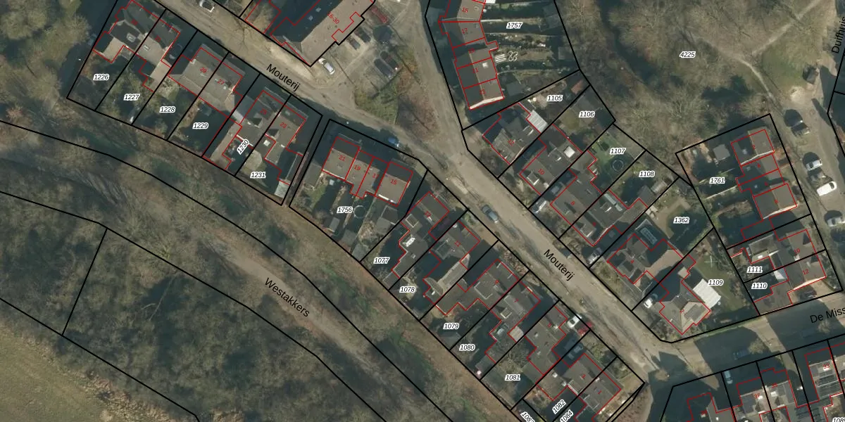 Mouterij 13 is gelegen op kadastraal perceel BLC00L1077. Deze kadastrale aanduiding is uniek en wordt gebruikt door het Kadaster om eigendomsrechten en andere zakelijke rechten vast te leggen. Het perceel maakt onderdeel uit van de kadastrale gemeente Berlicum.