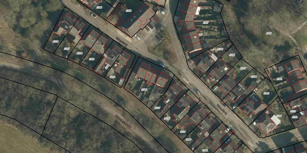 Het perceel waarop Mouterij 17 staat heeft een oppervlakte van 623 m². Dit is een groot perceel. De perceeloppervlakte wordt geregistreerd door het Kadaster. Gedetailleerde informatie over de maten van dit perceel kunt u vinden in het rapport Kadastrale kaart met maatvoering van Mouterij 17.