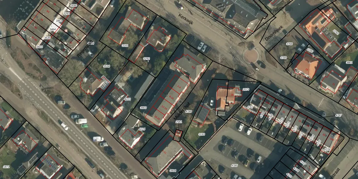 Het perceel waarop Muldershof 4 staat heeft een oppervlakte van 997 m². Dit is een groot perceel. De perceeloppervlakte wordt geregistreerd door het Kadaster. Gedetailleerde informatie over de maten van dit perceel kunt u vinden in het rapport Kadastrale kaart met maatvoering van Muldershof 4.