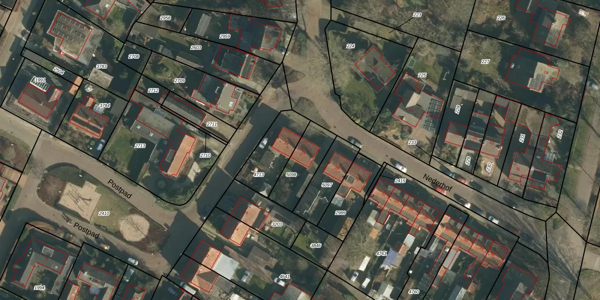 Gebruik de zoekbalk of klik op een perceel voor informatie over de adressen binnen dit perceel.