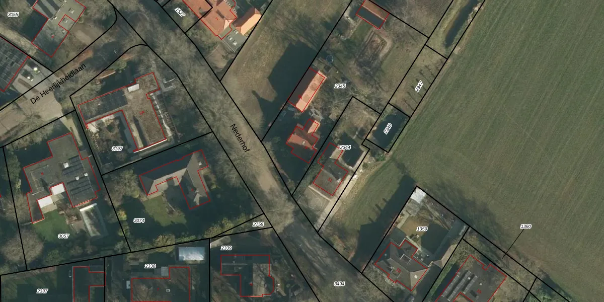 Nederhof 9 is gelegen op kadastraal perceel BLC00L2345. Deze kadastrale aanduiding is uniek en wordt gebruikt door het Kadaster om eigendomsrechten en andere zakelijke rechten vast te leggen. Het perceel maakt onderdeel uit van de kadastrale gemeente Berlicum.