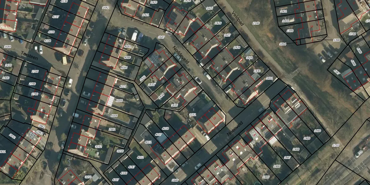Het perceel waarop Noddeveld 1 staat heeft een oppervlakte van 179 m². Dit is een middelgroot perceel. De perceeloppervlakte wordt geregistreerd door het Kadaster. Gedetailleerde informatie over de maten van dit perceel kunt u vinden in het rapport Kadastrale kaart met maatvoering van Noddeveld 1.