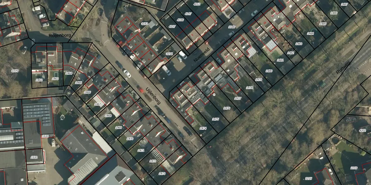 Gebruik de zoekbalk of klik op een perceel voor informatie over de adressen binnen dit perceel.