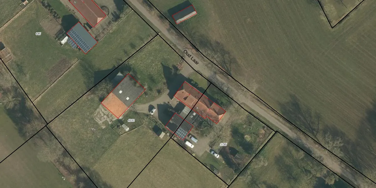 Het perceel waarop Oud Laar 4 staat heeft een oppervlakte van 3780 m². Dit is een zeer groot perceel. De perceeloppervlakte wordt geregistreerd door het Kadaster. Gedetailleerde informatie over de maten van dit perceel kunt u vinden in het rapport Kadastrale kaart met maatvoering van Oud Laar 4.
