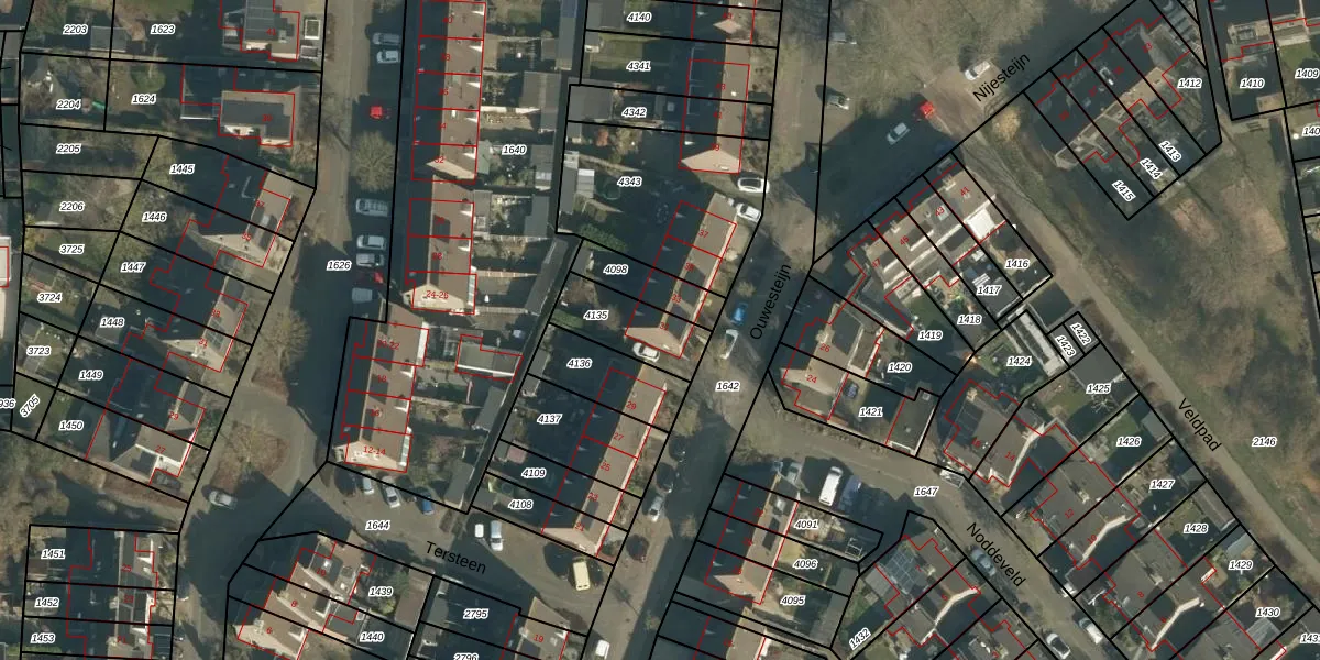 Het perceel waarop Ouwesteijn 31 staat heeft een oppervlakte van 197 m². Dit is een middelgroot perceel. De perceeloppervlakte wordt geregistreerd door het Kadaster. Gedetailleerde informatie over de maten van dit perceel kunt u vinden in het rapport Kadastrale kaart met maatvoering van Ouwesteijn 31.