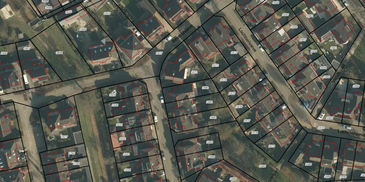 Gebruik de zoekbalk of klik op een perceel voor informatie over de adressen binnen dit perceel.