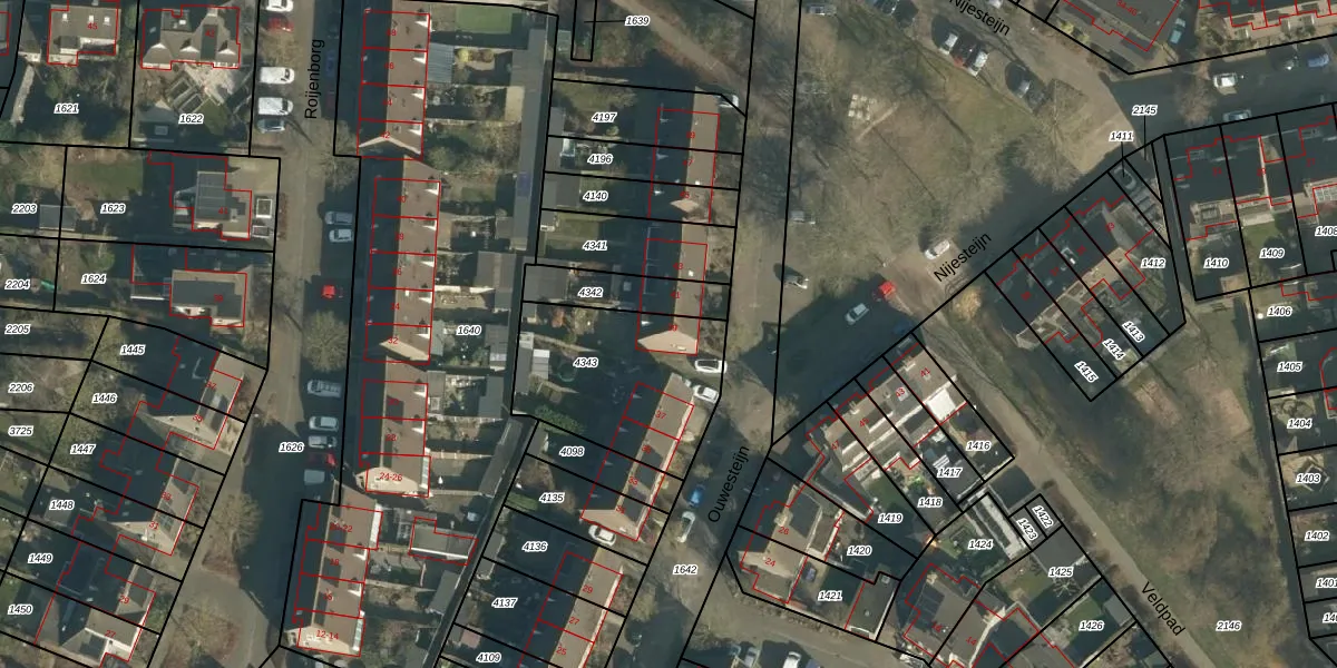 Het perceel waarop Ouwesteijn 39 staat heeft een oppervlakte van 618 m². Dit is een groot perceel. De perceeloppervlakte wordt geregistreerd door het Kadaster. Gedetailleerde informatie over de maten van dit perceel kunt u vinden in het rapport Kadastrale kaart met maatvoering van Ouwesteijn 39.