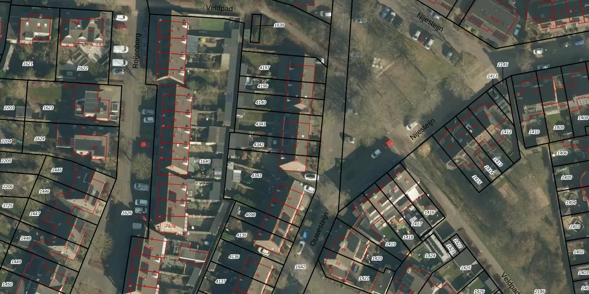 Het perceel waarop Ouwesteijn 41 staat heeft een oppervlakte van 169 m². Dit is een middelgroot perceel. De perceeloppervlakte wordt geregistreerd door het Kadaster. Gedetailleerde informatie over de maten van dit perceel kunt u vinden in het rapport Kadastrale kaart met maatvoering van Ouwesteijn 41.