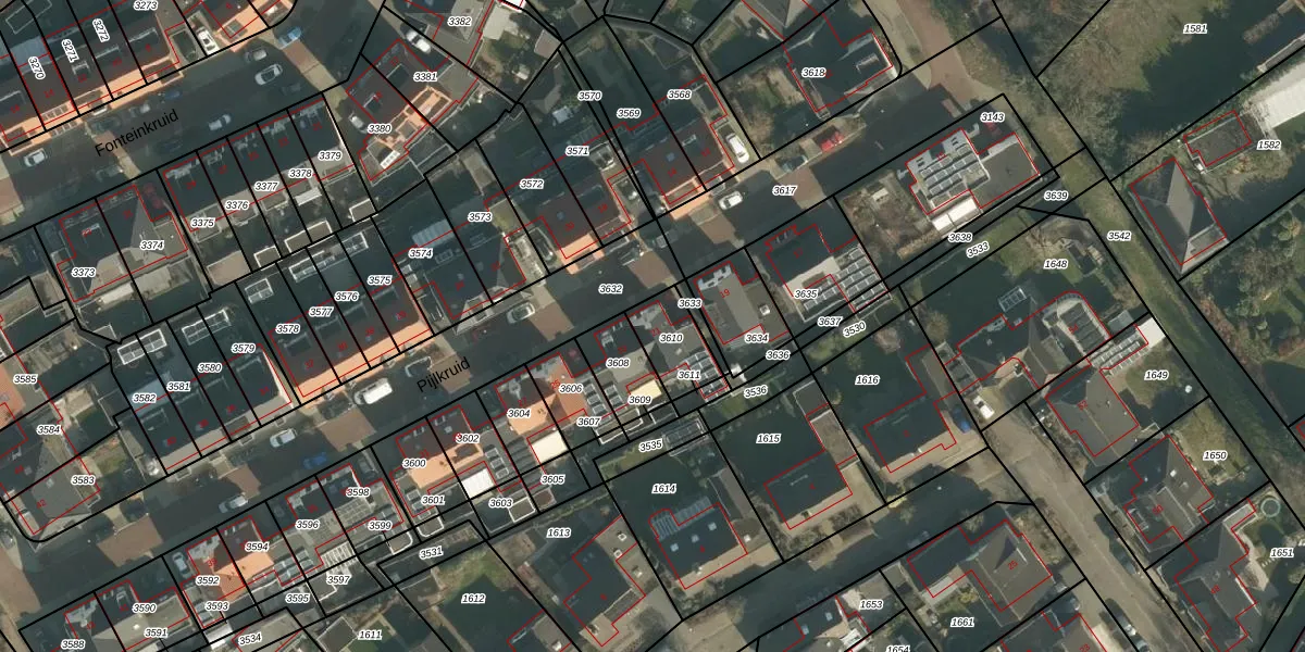 Pijlkruid 21 is gelegen op kadastraal perceel BLC00L3610. Deze kadastrale aanduiding is uniek en wordt gebruikt door het Kadaster om eigendomsrechten en andere zakelijke rechten vast te leggen. Het perceel maakt onderdeel uit van de kadastrale gemeente Berlicum.