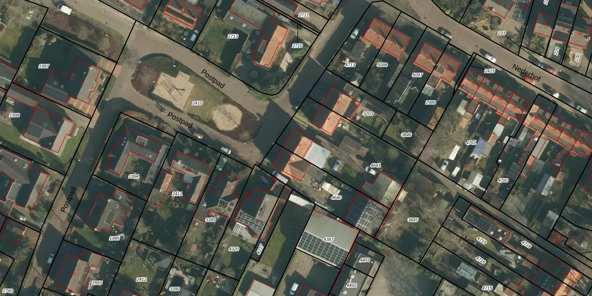 Het perceel waarop Postpad 12 staat heeft een oppervlakte van 844 m². Dit is een groot perceel. De perceeloppervlakte wordt geregistreerd door het Kadaster. Gedetailleerde informatie over de maten van dit perceel kunt u vinden in het rapport Kadastrale kaart met maatvoering van Postpad 12.
