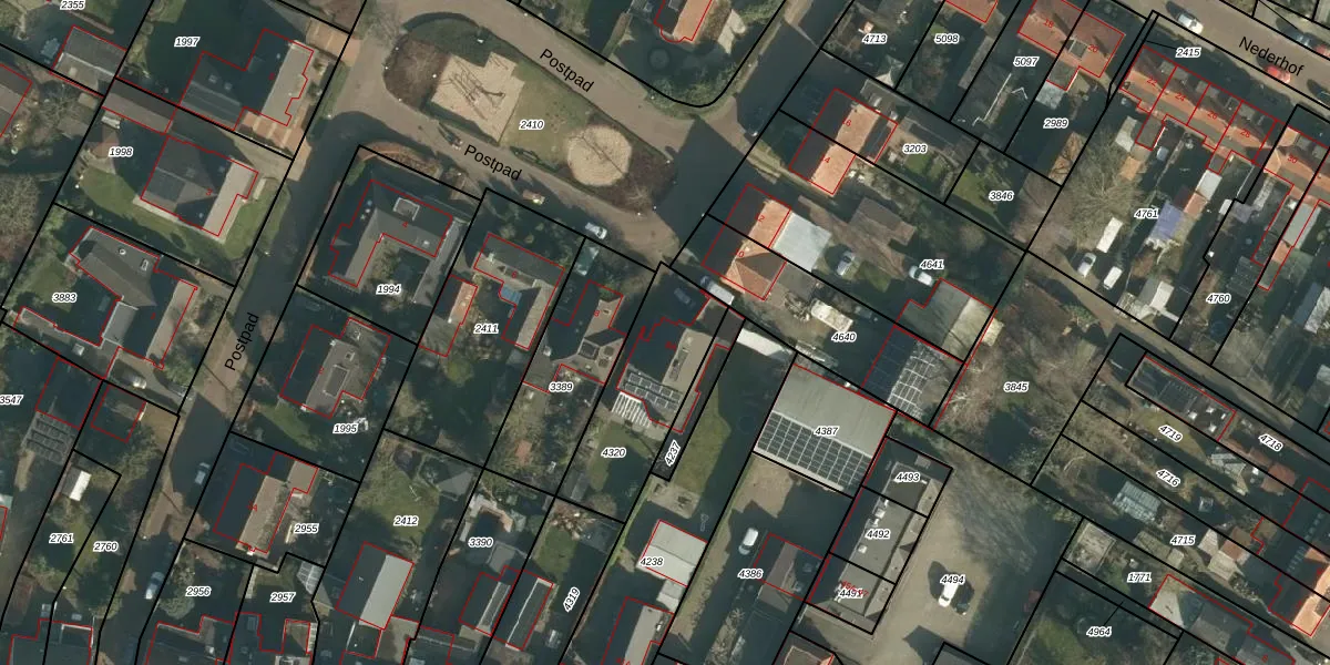 Het perceel waarop Postpad 8-A staat heeft een oppervlakte van 440 m². Dit is een groot perceel. De perceeloppervlakte wordt geregistreerd door het Kadaster. Gedetailleerde informatie over de maten van dit perceel kunt u vinden in het rapport Kadastrale kaart met maatvoering van Postpad 8-A.
