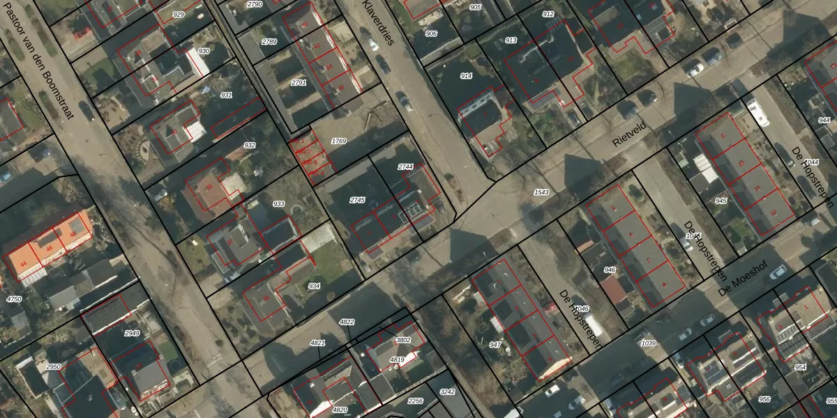 Het perceel waarop Rietveld 5 staat heeft een oppervlakte van 267 m². Dit is een middelgroot perceel. De perceeloppervlakte wordt geregistreerd door het Kadaster. Gedetailleerde informatie over de maten van dit perceel kunt u vinden in het rapport Kadastrale kaart met maatvoering van Rietveld 5.