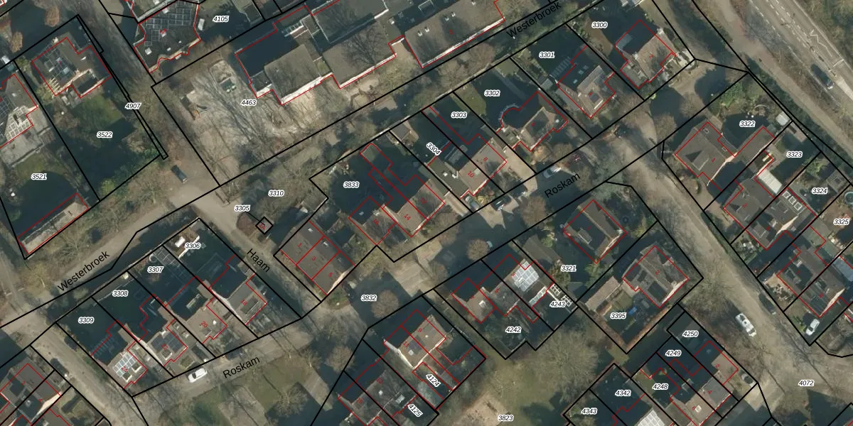 Het perceel waarop Roskam 12 staat heeft een oppervlakte van 887 m². Dit is een groot perceel. De perceeloppervlakte wordt geregistreerd door het Kadaster. Gedetailleerde informatie over de maten van dit perceel kunt u vinden in het rapport Kadastrale kaart met maatvoering van Roskam 12.