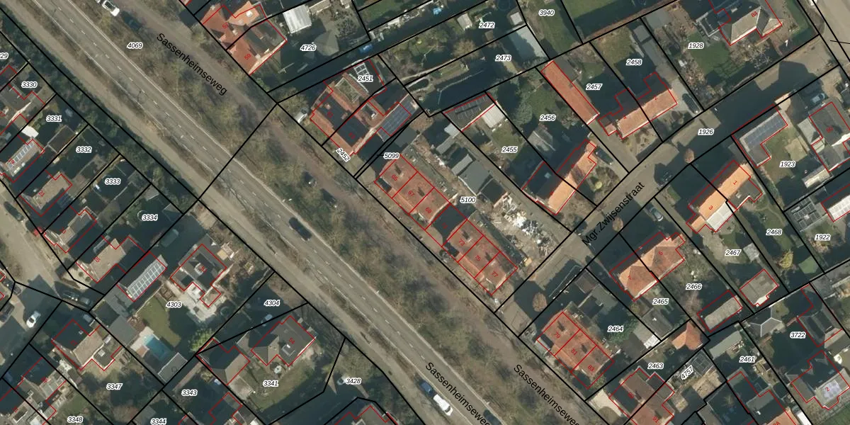 Sassenheimseweg 69 is gelegen op kadastraal perceel BLC00H5100. Deze kadastrale aanduiding is uniek en wordt gebruikt door het Kadaster om eigendomsrechten en andere zakelijke rechten vast te leggen. Het perceel maakt onderdeel uit van de kadastrale gemeente Berlicum.
