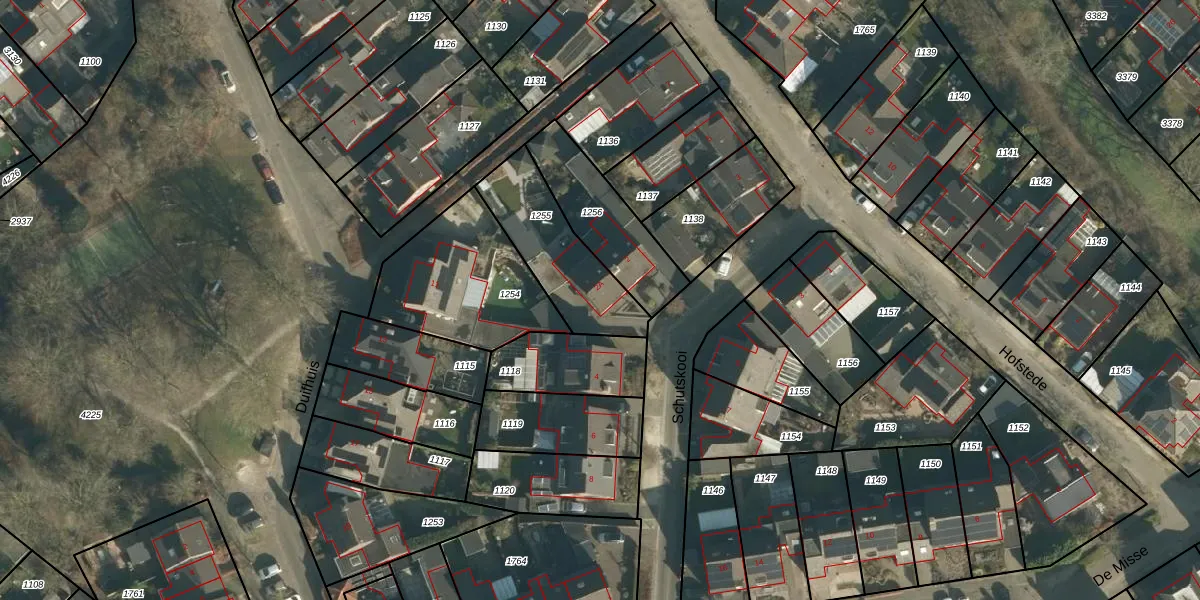Gebruik de zoekbalk of klik op een perceel voor informatie over de adressen binnen dit perceel.