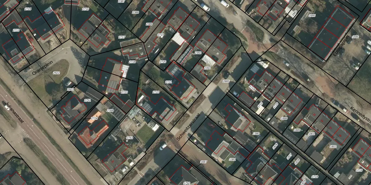 Het perceel waarop Schweitzerstraat 5 staat heeft een oppervlakte van 439 m². Dit is een groot perceel. De perceeloppervlakte wordt geregistreerd door het Kadaster. Gedetailleerde informatie over de maten van dit perceel kunt u vinden in het rapport Kadastrale kaart met maatvoering van Schweitzerstraat 5.