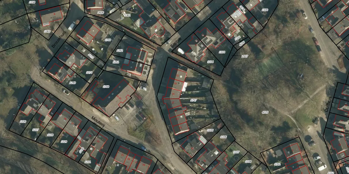 Het perceel waarop Smitse 13 staat heeft een oppervlakte van 1135 m². Dit is een zeer groot perceel. De perceeloppervlakte wordt geregistreerd door het Kadaster. Gedetailleerde informatie over de maten van dit perceel kunt u vinden in het rapport Kadastrale kaart met maatvoering van Smitse 13.