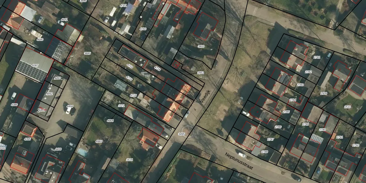 Het perceel waarop Veedijk 13 staat heeft een oppervlakte van 305 m². Dit is een groot perceel. De perceeloppervlakte wordt geregistreerd door het Kadaster. Gedetailleerde informatie over de maten van dit perceel kunt u vinden in het rapport Kadastrale kaart met maatvoering van Veedijk 13.