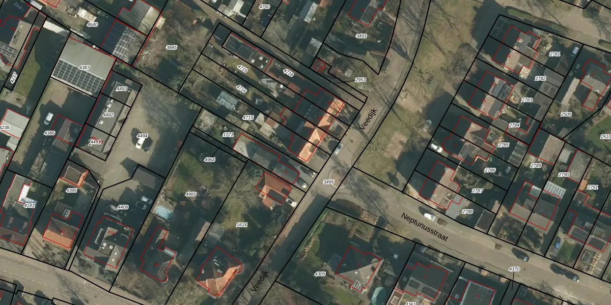 Het perceel waarop Veedijk 7 staat heeft een oppervlakte van 435 m². Dit is een groot perceel. De perceeloppervlakte wordt geregistreerd door het Kadaster. Gedetailleerde informatie over de maten van dit perceel kunt u vinden in het rapport Kadastrale kaart met maatvoering van Veedijk 7.