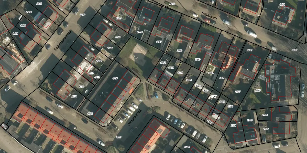 Gebruik de zoekbalk of klik op een perceel voor informatie over de adressen binnen dit perceel.
