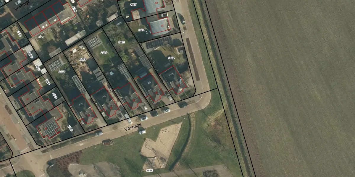 Het perceel waarop Voshage 24 staat heeft een oppervlakte van 690 m². Dit is een groot perceel. De perceeloppervlakte wordt geregistreerd door het Kadaster. Gedetailleerde informatie over de maten van dit perceel kunt u vinden in het rapport Kadastrale kaart met maatvoering van Voshage 24.