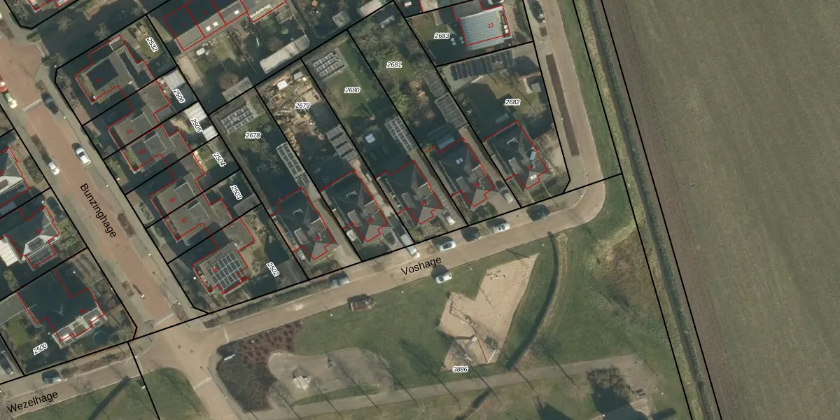 Het perceel waarop Voshage 28 staat heeft een oppervlakte van 700 m². Dit is een groot perceel. De perceeloppervlakte wordt geregistreerd door het Kadaster. Gedetailleerde informatie over de maten van dit perceel kunt u vinden in het rapport Kadastrale kaart met maatvoering van Voshage 28.
