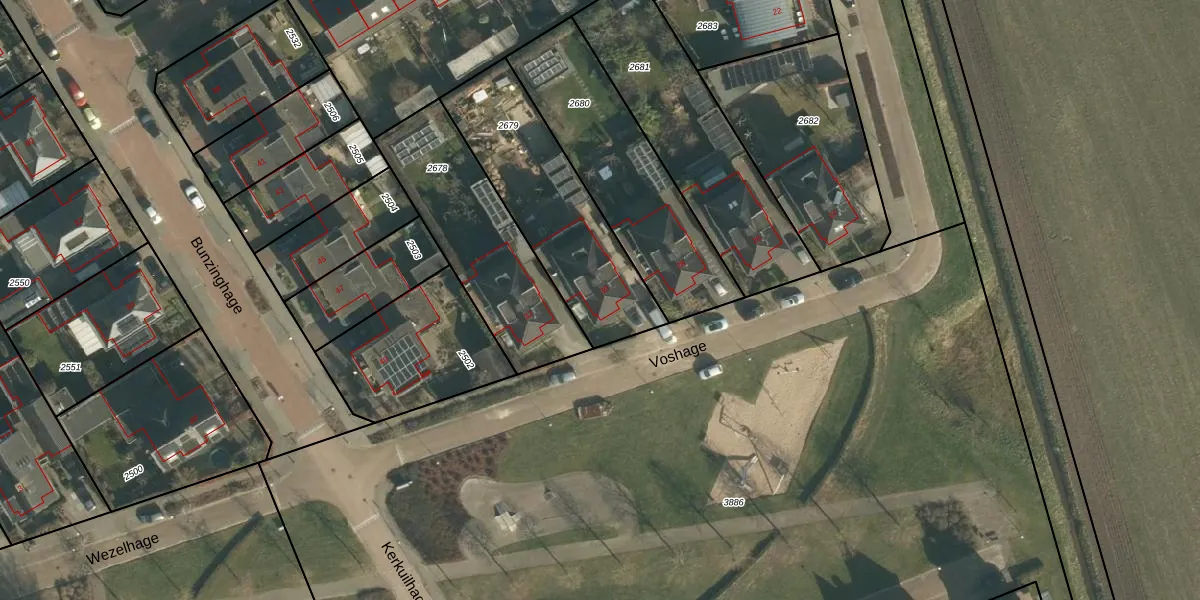 Het perceel waarop Voshage 30 staat heeft een oppervlakte van 659 m². Dit is een groot perceel. De perceeloppervlakte wordt geregistreerd door het Kadaster. Gedetailleerde informatie over de maten van dit perceel kunt u vinden in het rapport Kadastrale kaart met maatvoering van Voshage 30.