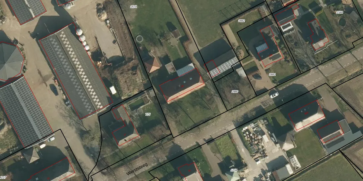 Het perceel waarop Werststeeg 19 staat heeft een oppervlakte van 3370 m². Dit is een zeer groot perceel. De perceeloppervlakte wordt geregistreerd door het Kadaster. Gedetailleerde informatie over de maten van dit perceel kunt u vinden in het rapport Kadastrale kaart met maatvoering van Werststeeg 19.