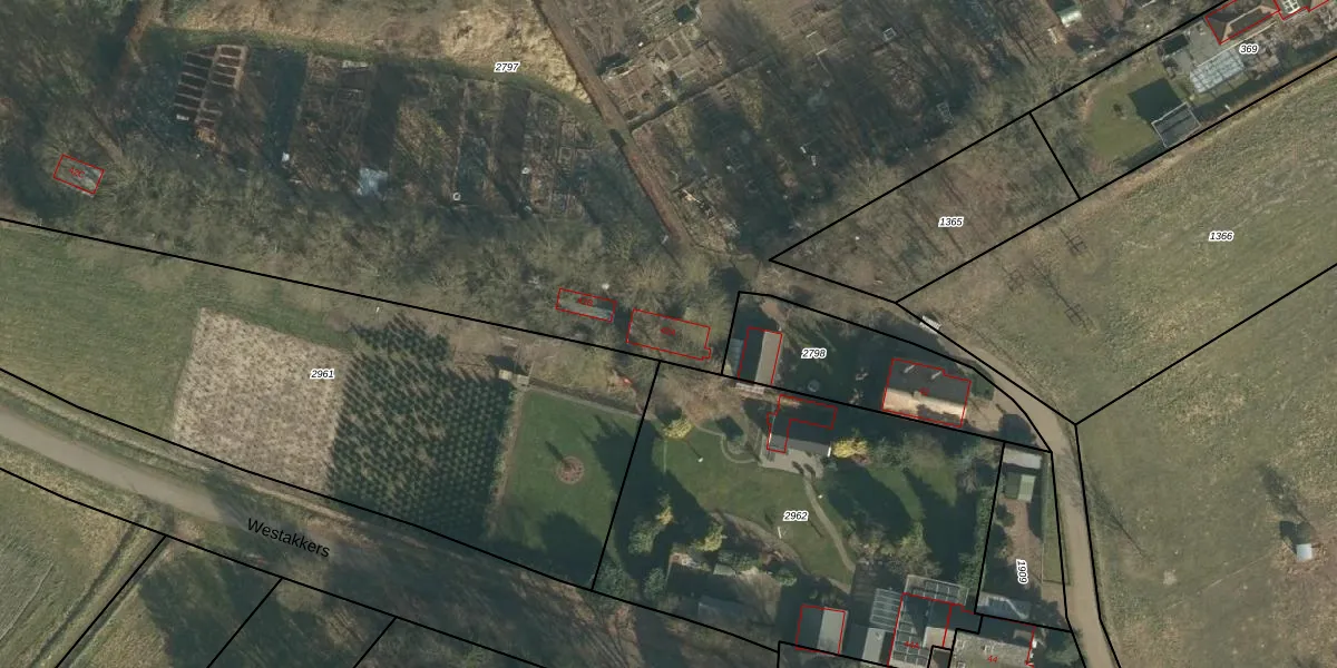 Het perceel waarop Westakkers 42-A staat heeft een oppervlakte van 2,1 ha. Dit is een zeer groot perceel. De perceeloppervlakte wordt geregistreerd door het Kadaster. Gedetailleerde informatie over de maten van dit perceel kunt u vinden in het rapport Kadastrale kaart met maatvoering van Westakkers 42-A.