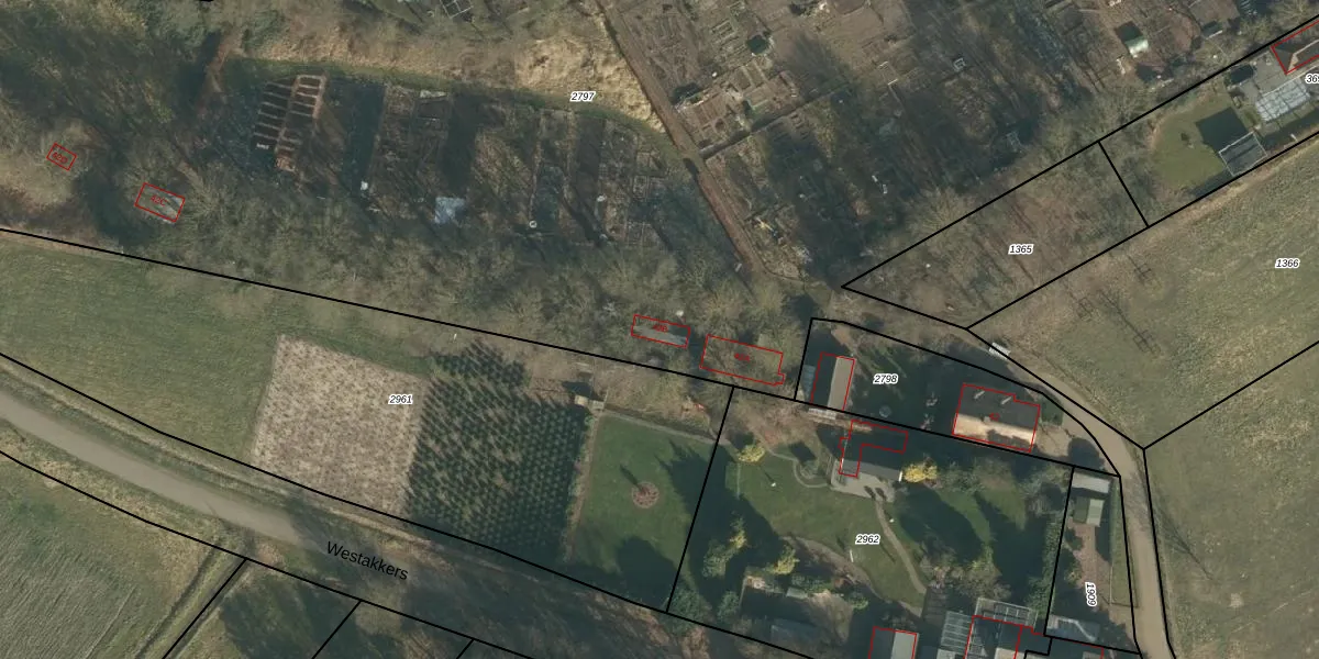 Het perceel waarop Westakkers 42-B staat heeft een oppervlakte van 2,1 ha. Dit is een zeer groot perceel. De perceeloppervlakte wordt geregistreerd door het Kadaster. Gedetailleerde informatie over de maten van dit perceel kunt u vinden in het rapport Kadastrale kaart met maatvoering van Westakkers 42-B.