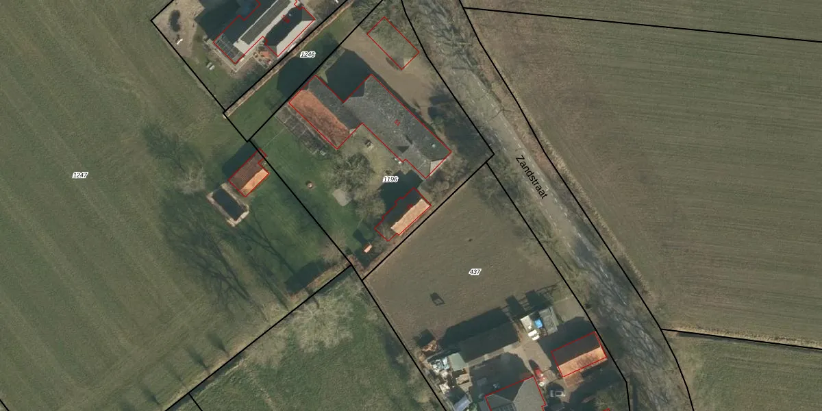 Het perceel waarop Zandstraat 49 staat heeft een oppervlakte van 2100 m². Dit is een zeer groot perceel. De perceeloppervlakte wordt geregistreerd door het Kadaster. Gedetailleerde informatie over de maten van dit perceel kunt u vinden in het rapport Kadastrale kaart met maatvoering van Zandstraat 49.