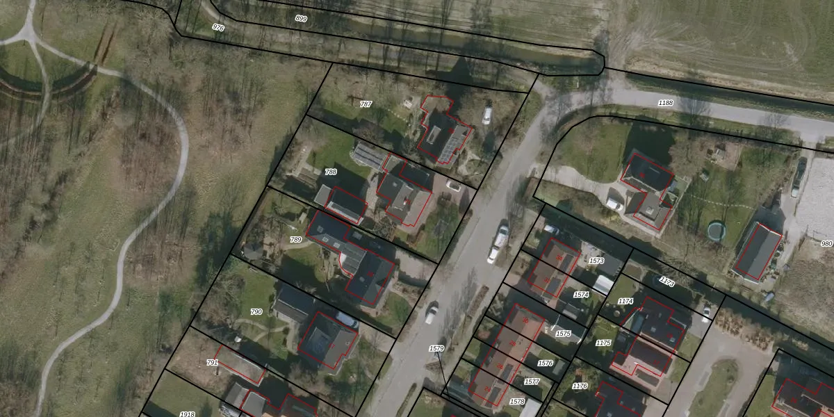 Gebruik de zoekbalk of klik op een perceel voor informatie over de adressen binnen dit perceel.