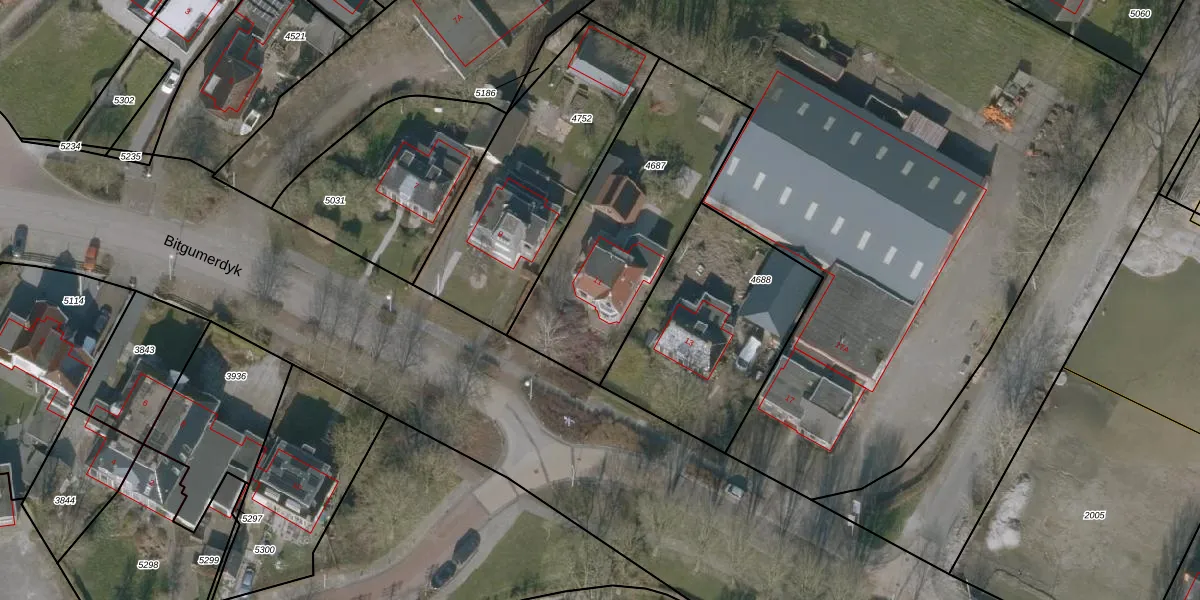 Het perceel waarop Bitgumerdyk 11 staat heeft een oppervlakte van 942 m². Dit is een groot perceel. De perceeloppervlakte wordt geregistreerd door het Kadaster. Gedetailleerde informatie over de maten van dit perceel kunt u vinden in het rapport Kadastrale kaart met maatvoering van Bitgumerdyk 11.