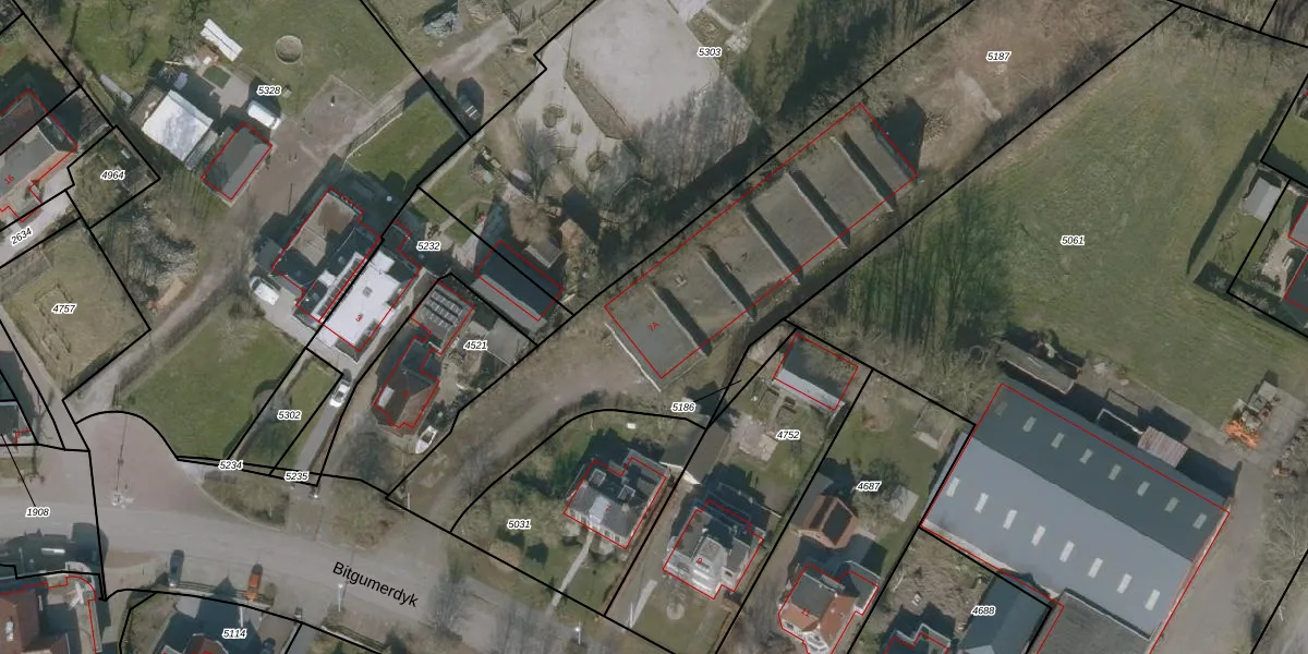 Bitgumerdyk 7-A is gelegen op kadastraal perceel BLK00A5187. Deze kadastrale aanduiding is uniek en wordt gebruikt door het Kadaster om eigendomsrechten en andere zakelijke rechten vast te leggen. Het perceel maakt onderdeel uit van de kadastrale gemeente Berlikum.