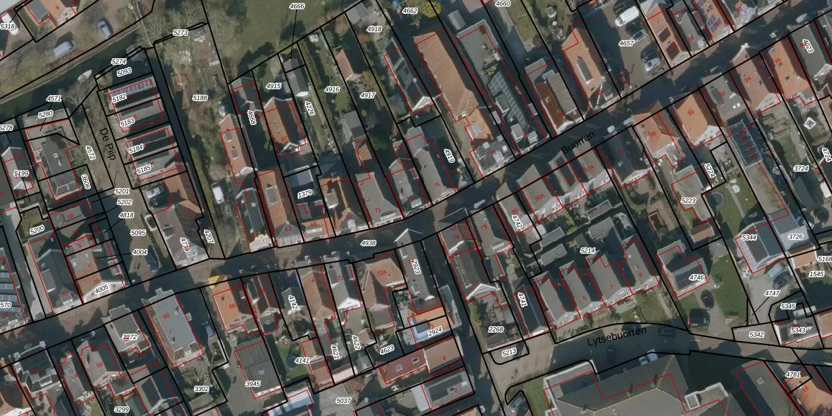 Het perceel waarop Buorren 73 staat heeft een oppervlakte van 385 m². Dit is een groot perceel. De perceeloppervlakte wordt geregistreerd door het Kadaster. Gedetailleerde informatie over de maten van dit perceel kunt u vinden in het rapport Kadastrale kaart met maatvoering van Buorren 73.