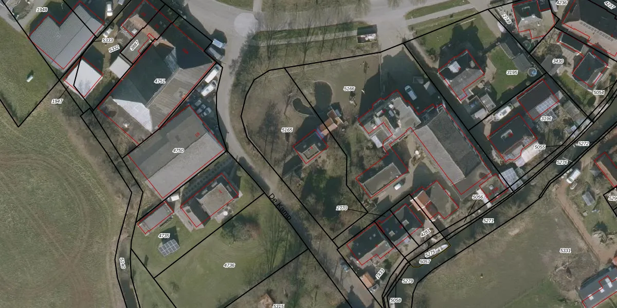 Het perceel waarop De Kamp 4-A staat heeft een oppervlakte van 1084 m². Dit is een zeer groot perceel. De perceeloppervlakte wordt geregistreerd door het Kadaster. Gedetailleerde informatie over de maten van dit perceel kunt u vinden in het rapport Kadastrale kaart met maatvoering van De Kamp 4-A.